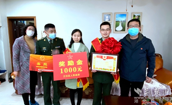 在武漢市江岸區(qū),該支隊(duì)某中隊(duì)指導(dǎo)員馬鳴梟的妻子官杏拿著立功喜報(bào),撫摸著閃耀的軍功章,說道:“丈夫在部隊(duì)立功受獎,不僅是他個(gè)人的榮譽(yù),也是我們軍屬的榮光。部隊(duì)登門送喜報(bào),讓軍屬分享到這份榮耀,更有助于提升軍人、軍屬的榮譽(yù)感和社會地位?!?/p>