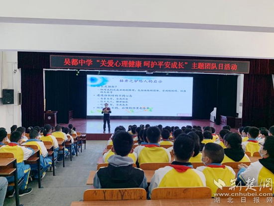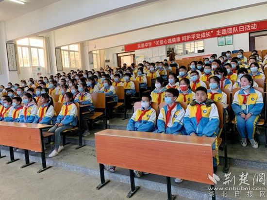 荊楚網(wǎng)(湖北日?qǐng)?bào)網(wǎng))訊(通訊員 柳林)提高學(xué)生抗挫折能力是學(xué)校育人工作中不可或缺的環(huán)節(jié)。3月24日,鄂州市吳都中學(xué)為學(xué)校團(tuán)員與少先隊(duì)員代表舉辦了一場(chǎng)主題為“關(guān)愛心理健康,呵護(hù)平安成長(zhǎng)”團(tuán)隊(duì)日活動(dòng)課。