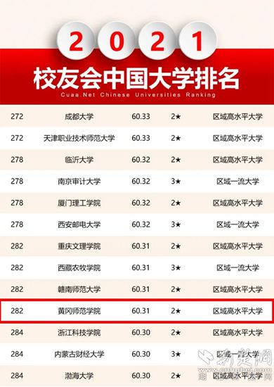 2021中國大學(xué)排名榜單公布,黃岡師范學(xué)院位居全國排名第282位。通訊員供圖