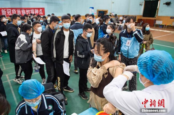 3月26日,山西太原城市學(xué)院師生在校內(nèi)指定地點(diǎn)接種新冠病毒疫苗。 中新社記者 武俊杰 攝