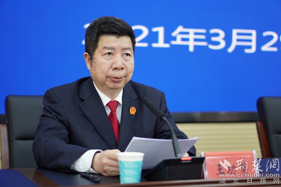 黃石市中級人民法院黨組書記、院長王功榮進(jìn)行通報。記者 阮瓊 攝