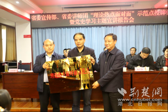 荊楚網(wǎng)(湖北日報網(wǎng))訊(記者呂鑒蕾 通訊員向文容)3月30日,省委宣傳部、省委講師團、湖北理工學院“理論熱點面對面”示范點授牌儀式在黃石市陽新縣興國鎮(zhèn)舉行,宣告湖北理工學院—興國鎮(zhèn)“理論熱點面對面示范點”正式授牌成立。