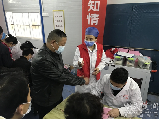 志愿者為接種人群測量體溫。(通訊員供圖)