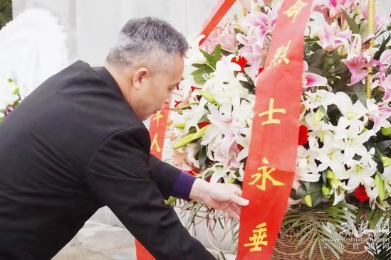 向革命先烈敬獻(xiàn)花籃、花圈。熊子璇 攝