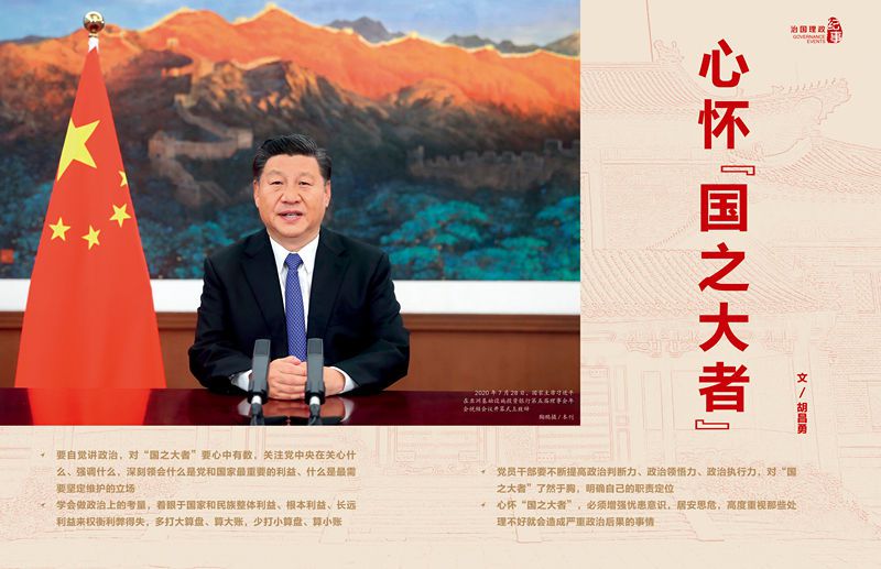 2020年12月,習(xí)近平總書記在中央政治局民主生活會(huì)上強(qiáng)調(diào),加強(qiáng)政治建設(shè),提高政治能力,堅(jiān)守人民情懷,不斷提高政治判斷力、政治領(lǐng)悟力、政治執(zhí)行力。并指出,要“對(duì)‘國(guó)之大者’了然于胸,明確自己的職責(zé)定位?!?/p>