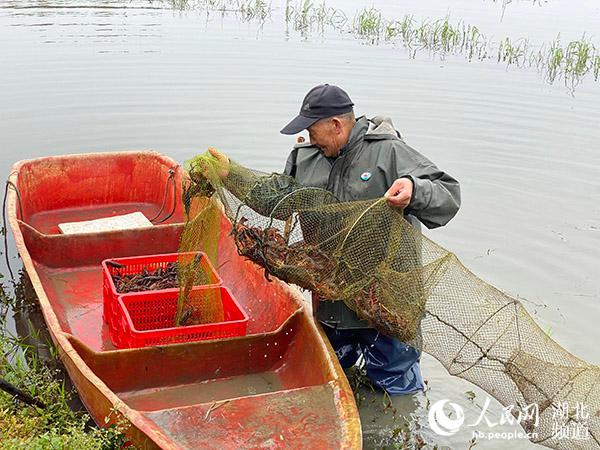 湖北潛江,蝦農(nóng)正在捕蝦。人民網(wǎng) 張沛攝
