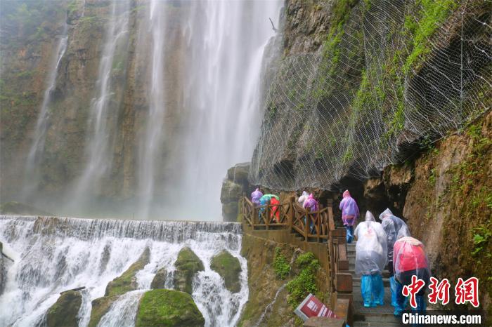 宜昌市三峽大瀑布清明節(jié)期間雨水充沛,景致壯觀,游客紛至沓來。湖北省文化和旅游廳供圖