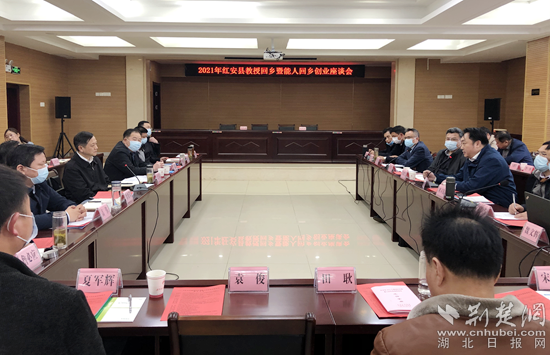 紅安縣“教授回鄉(xiāng)暨能人回鄉(xiāng)創(chuàng)業(yè)座談會”現(xiàn)場。通訊員供圖