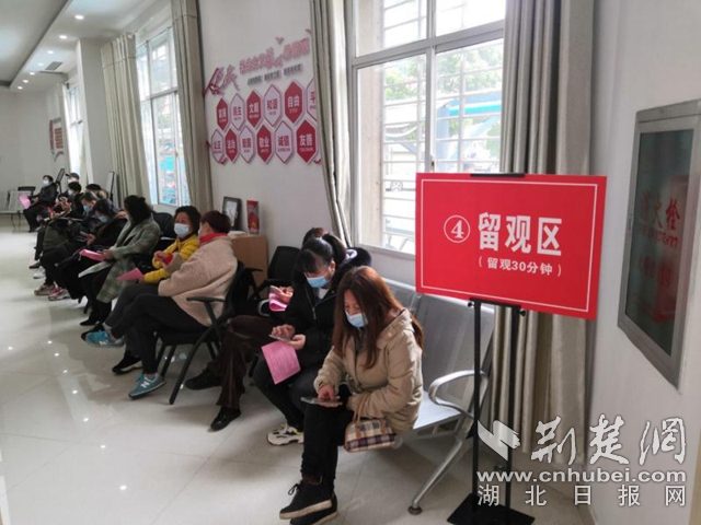 居民接種完疫苗后在觀察區(qū)等候。通訊員供圖