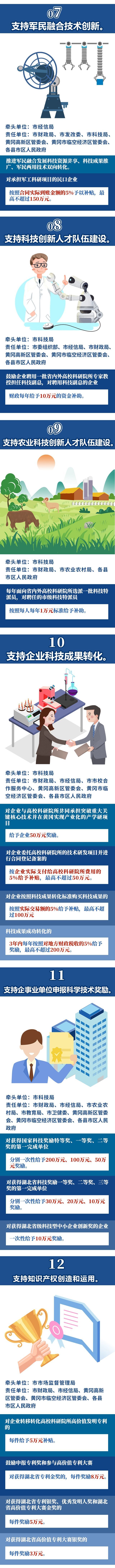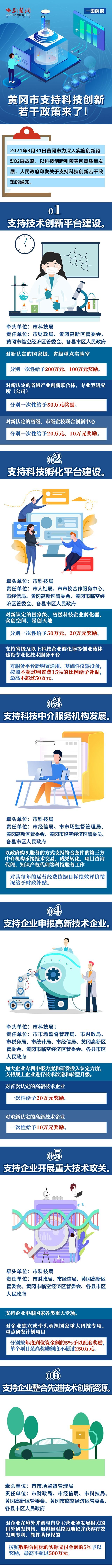 荊楚網(wǎng)(湖北日?qǐng)?bào)網(wǎng))訊(記者劉璐、王焱堯)為深入實(shí)施創(chuàng)新驅(qū)動(dòng)發(fā)展戰(zhàn)略,以科技創(chuàng)新引領(lǐng)黃岡高質(zhì)量發(fā)展,4月6日,黃岡市發(fā)布《關(guān)于支持科技創(chuàng)新若干政策》,從技術(shù)創(chuàng)新平臺(tái)建設(shè)、科技孵化平臺(tái)建設(shè)、企業(yè)申報(bào)高新技術(shù)企業(yè)等13個(gè)方面,為市場(chǎng)主體提供“真金白銀”的支持。政策的亮點(diǎn)都有哪些?荊楚網(wǎng)(湖北日?qǐng)?bào)網(wǎng))記者帶您一圖讀懂。