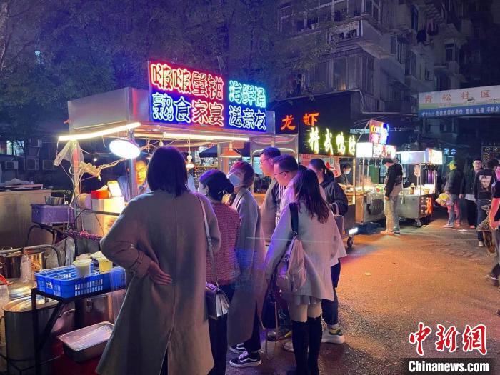 4月6日晚,武漢萬松園美食街人氣漸旺 武一力 攝