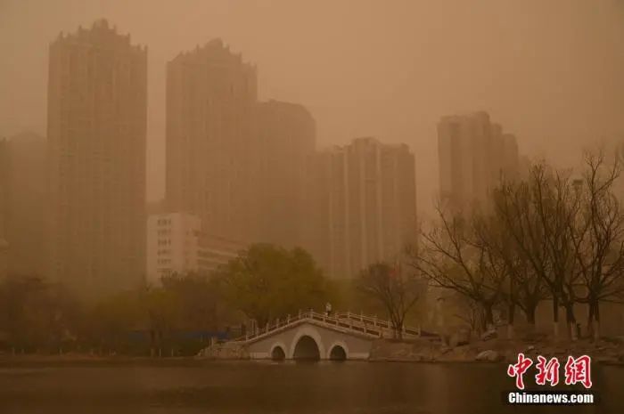 4月15日,呼和浩特出現(xiàn)沙塵天氣,天空昏黃。中新社記者 劉文華 攝