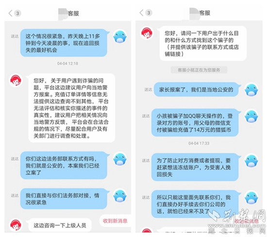警方迅速聯(lián)系游戲平臺客服。(通訊員供圖)