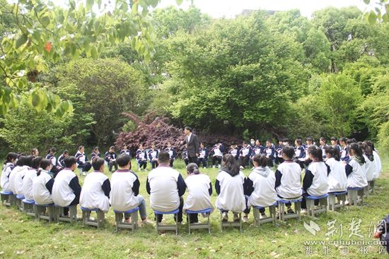荊楚網(wǎng)(湖北日報網(wǎng))訊(通訊員夏雨苗 吳韻波)4月14日上午,英山一中高一(13)班學(xué)生集聚在學(xué)校操場草坪上,聆聽該校黨委書記、校長劉振武宣講黨史。