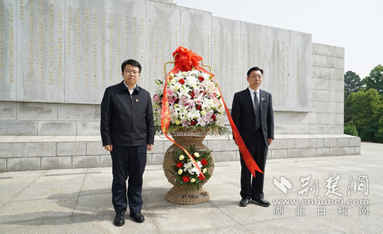 在陽新縣湘鄂贛邊區(qū)鄂東南革命烈士陵園,湖北師范大學(xué)向革命先烈敬獻(xiàn)了花籃。
