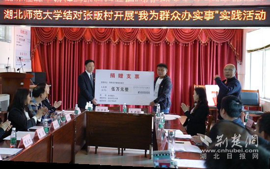 湖北師范大學(xué)黨委書記周啟紅代表學(xué)校向張畈村捐贈(zèng)鄉(xiāng)村建設(shè)資金。通訊員供圖