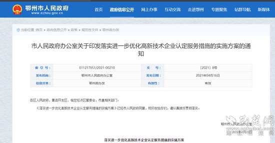 3月23日,鄂州市印發(fā)《落實(shí)進(jìn)一步優(yōu)化高新技術(shù)企業(yè)認(rèn)定服務(wù)措施的實(shí)施方案》,方案提出,2021—2025年,鄂州市將培育高新技術(shù)企業(yè)300家,申報高新技術(shù)企業(yè)200家,力爭2025年全市凈增高新技術(shù)企業(yè)140家,高新技術(shù)企業(yè)總數(shù)達(dá)到270家。