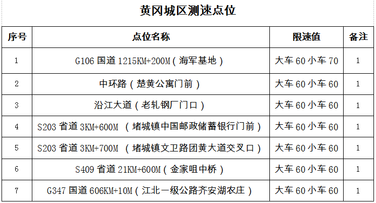 黃岡城區(qū)6大測(cè)速點(diǎn)位。通訊員供圖