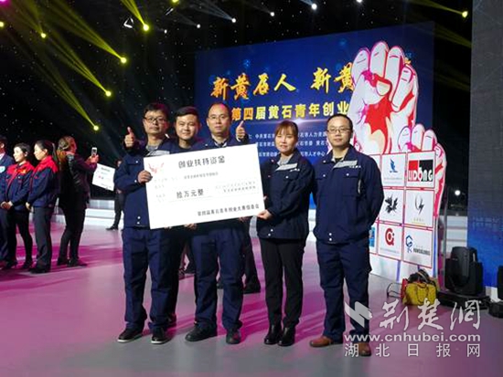 徐紹勇(右三)科研團隊榮獲第四屆黃石青年創(chuàng)業(yè)大賽一等獎。(通訊員供圖)