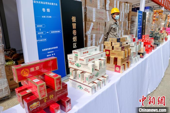 圖為在咸寧市湖北危險廢物處置中心展出的假煙、假酒等 張暢 攝