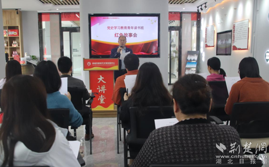 麻城紅色文化研究會(huì)會(huì)長李敏為退役軍人事務(wù)局全體黨員講授黨史課。 通訊員供圖