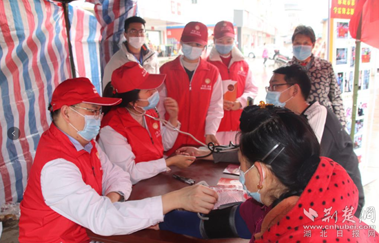 醫(yī)務(wù)志愿者走進(jìn)社區(qū)為居民義診。通訊員供圖