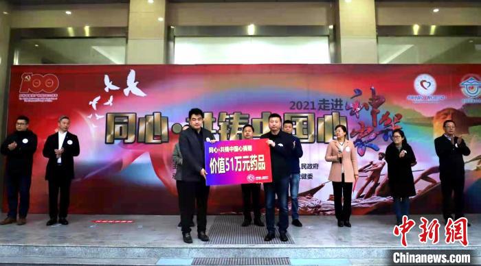 “同心·共鑄中國(guó)心”組委會(huì)向當(dāng)?shù)鼐栀?zèng)51萬元藥品 李重陽(yáng) 攝