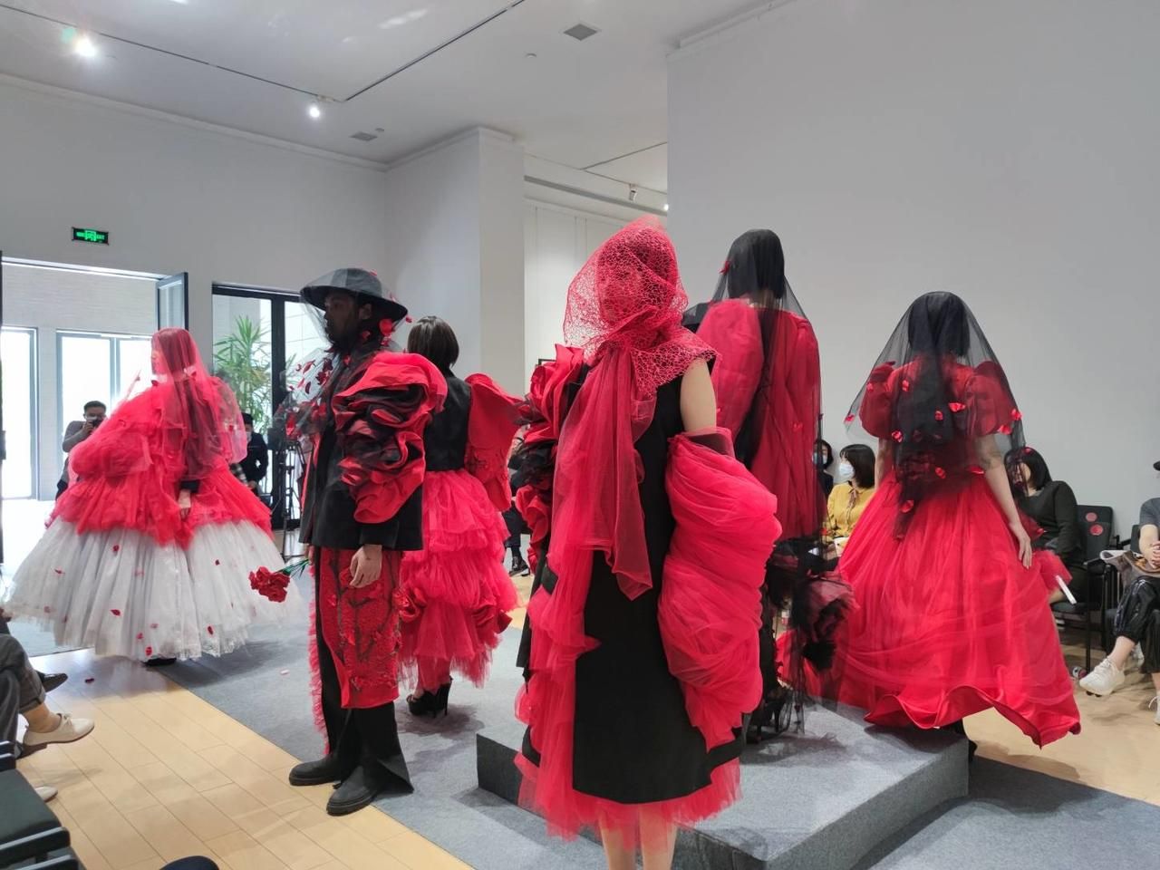 服裝動(dòng)態(tài)秀展演結(jié)束后,江漢大學(xué)2021年應(yīng)屆畢業(yè)生代表給服裝系專(zhuān)業(yè)老師舉行了獻(xiàn)花儀式?;顒?dòng)現(xiàn)場(chǎng)來(lái)自社會(huì)各界、兄弟院校、各大企業(yè)及江漢大學(xué)師生代表300余人參加了開(kāi)幕式展演活動(dòng)。
