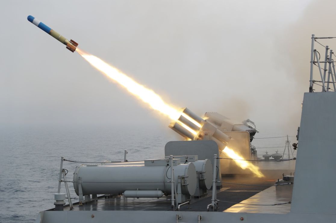 △北部戰(zhàn)區(qū)海軍某驅(qū)逐艦支隊(duì)貴陽(yáng)艦發(fā)射水聲對(duì)抗器材