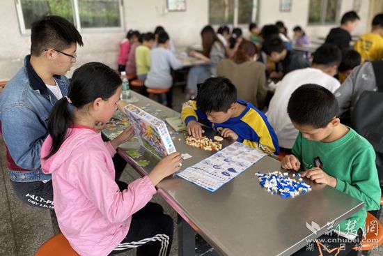 在拼圖過程中,志愿者們用心地傾聽著,感受著小朋友們豐富的內心世界。黃州小朋友問:“姐姐,做積木真有趣,我很喜歡設計和拼接這些模型,將來也做這樣的工作就好了,有這樣的工作嗎?”“當然有呀,你看一棟棟的建筑、一座座的橋梁拔地而起,這就是工程師的工作,你可以像姐姐一樣,將來做一位工程師呀!” 志愿者陳瑞肯定地說。