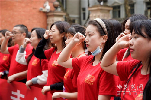 師生黨員宣誓。湖北日報大學(xué)生記者吳慶華 供圖