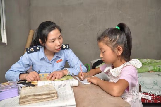 郭細(xì)梅輔導(dǎo)許瑜做作業(yè)。通訊員供圖