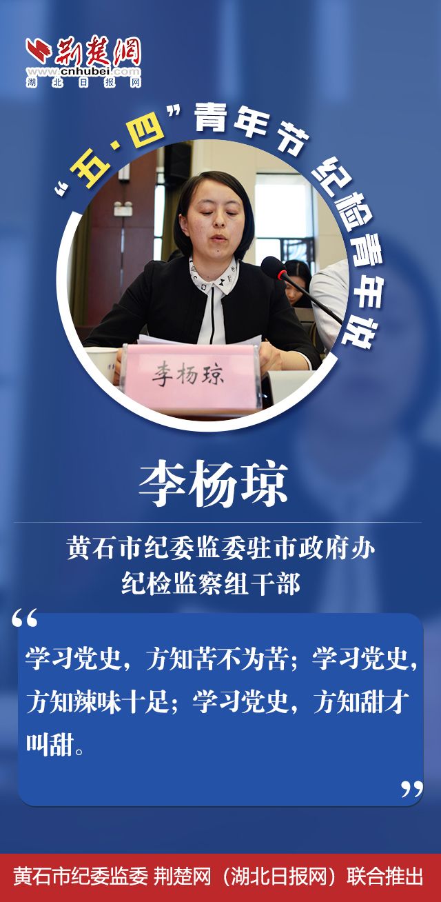 圍繞“學黨史、悟思想、勇?lián)敗边@一主題,黃石市紀委監(jiān)委10名青年干部代表結合自身的思想、學習和工作情況作了交流發(fā)言。他們既談理想,也談?chuàng)?;既立足當下,又展望未來。具體都有哪些亮點?且聽“紀檢青年說”。