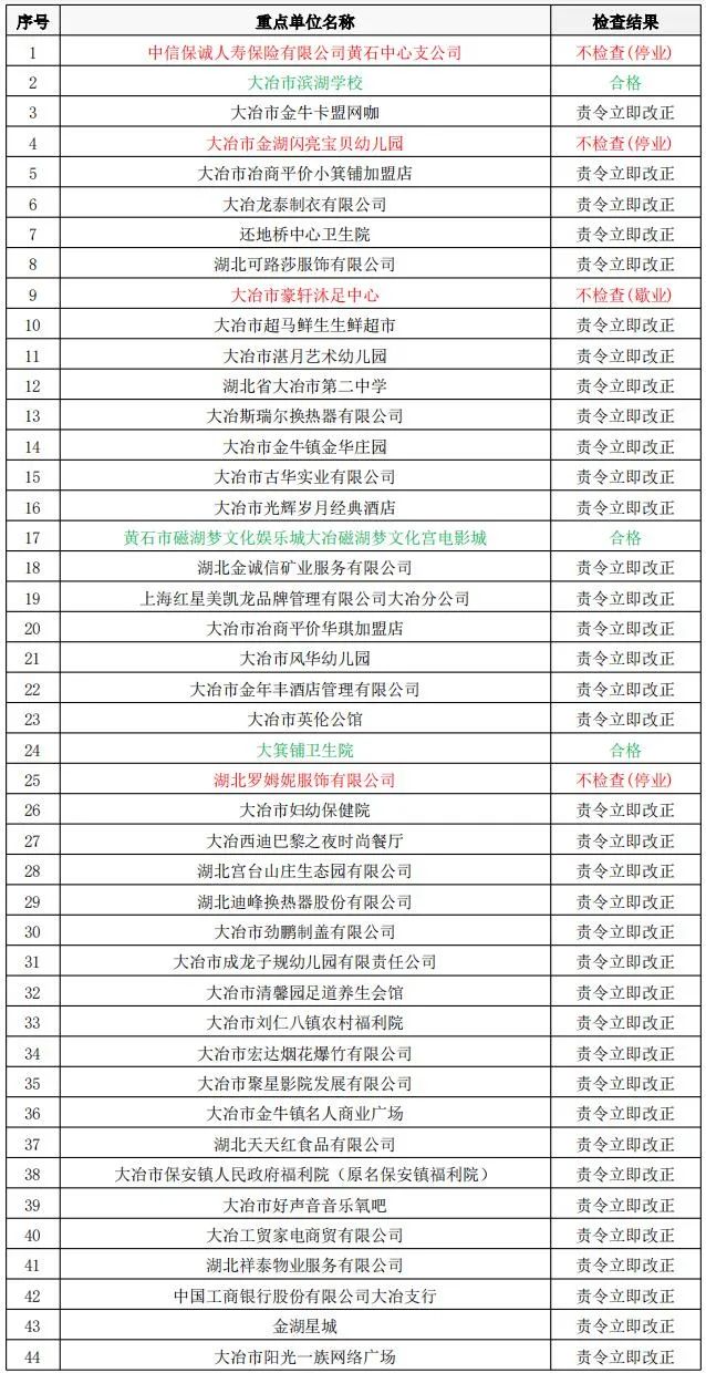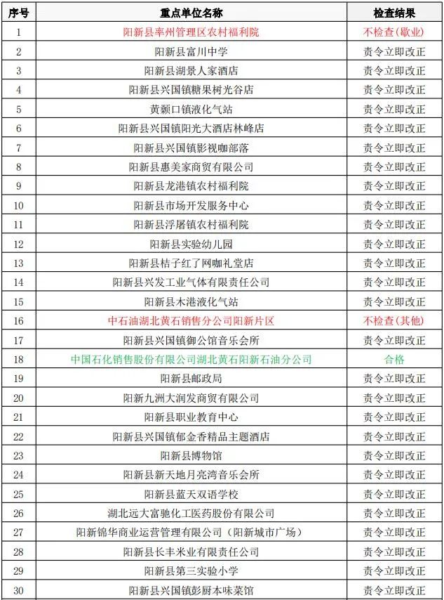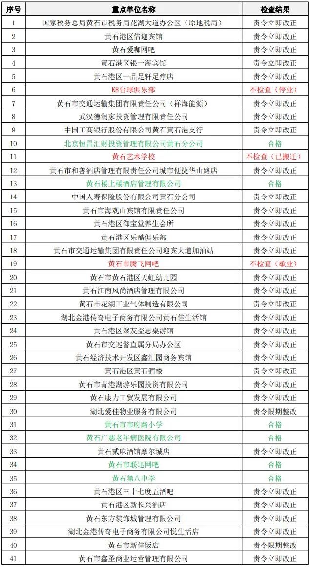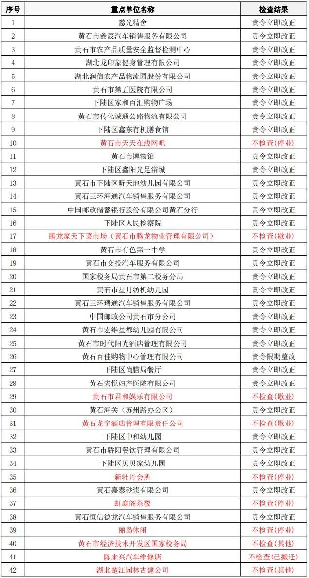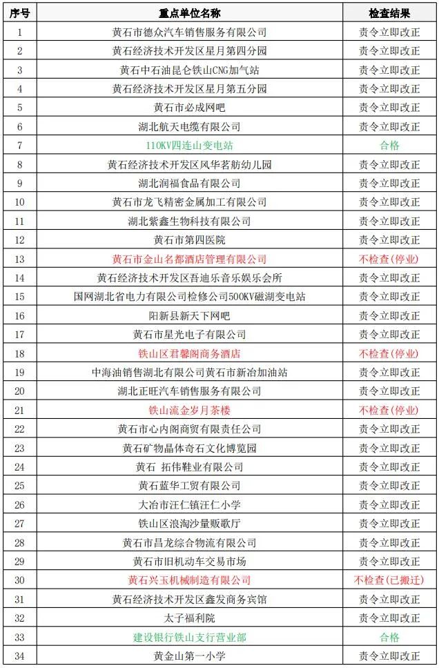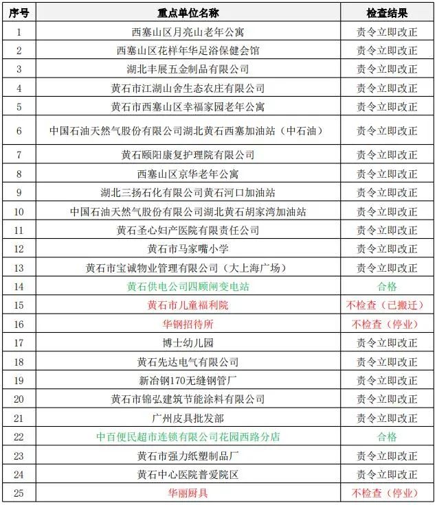 荊楚網(wǎng)(湖北日?qǐng)?bào)網(wǎng))訊(記者劉璐 通訊員張敏)5月6日,黃石消防公布黃石市4月份“雙隨機(jī)一公開(kāi)”消防監(jiān)管抽查結(jié)果公告。4月份共抽查社會(huì)單位243家,其中,檢查合格16家、責(zé)令改正196家、未開(kāi)業(yè)31家。