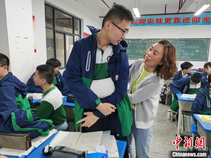 中新網(wǎng)襄陽5月7日電 (黃剛 胡傳林)湖北襄陽一中高一年級1500多名學(xué)生7日接到一項特殊的“體驗式作業(yè)”:從當天清晨開始,每名學(xué)生腰間綁上負重袋,負重上課、跑操、吃飯、午休,直到當晚6時30分結(jié)束,親身體驗?zāi)赣H懷胎十月的艱辛。