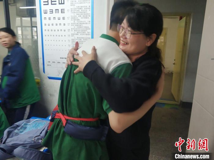 學(xué)生們身上的負重袋,都是由學(xué)生和家長一起提前縫制的,里面裝著大米或沙子,重量和學(xué)生們出生時的體重一樣,負重袋上寫著學(xué)生們各自的出生日期和乳名。