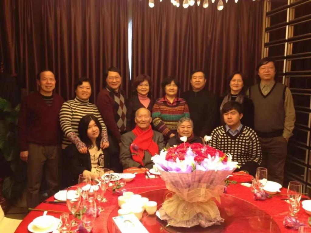 ↑謝湘(后排右四)全家給母親(前排右二)祝賀93歲生日。受訪者供圖