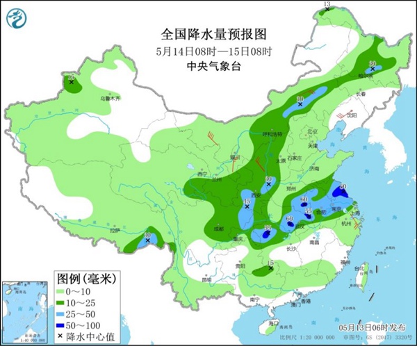 中國天氣網(wǎng)訊 預(yù)計今天夜間起(5月13日)至16日,中東部新一輪較強降雨和強對流天氣來襲,最強降雨主要出現(xiàn)在長江沿江及以北地區(qū),部分地區(qū)或有大暴雨出現(xiàn)。氣溫方面,南方高溫范圍將所有擴展,江南部分地區(qū)周末或現(xiàn)今年首個高溫日。