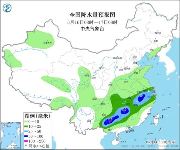 16日,江淮南部、江漢東部、江南大部、華南西北部等地的部分地區(qū)有中到大雨,其中,安徽南部、湖南南部、江西北部、廣西北部等地的部分地區(qū)有暴雨,局地大暴雨。