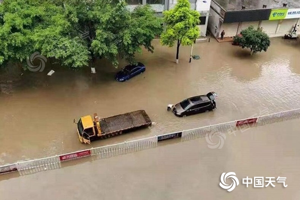 近期,廣西北部遭遇強(qiáng)降雨,羅城縣城低洼路段出現(xiàn)內(nèi)澇。(圖/韋文柯)