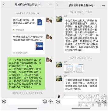 機(jī)動(dòng)車企業(yè)稅務(wù)微信聯(lián)絡(luò)群聊天截圖。通訊員供圖