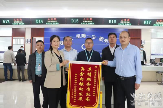 荊楚網(wǎng)(湖北日報(bào)網(wǎng))訊(通訊員 袁文浩 鄢於飛)5月17日上午,湖北愛普瑞人力資源有限公司工作人員將一面寫有“真情服務(wù)質(zhì)效高,真金白銀助發(fā)展”的錦旗送到了黃梅縣政務(wù)服務(wù)中心,感謝人社窗口工作人員為該企業(yè)辦社保業(yè)務(wù)提供便捷高效的服務(wù)。