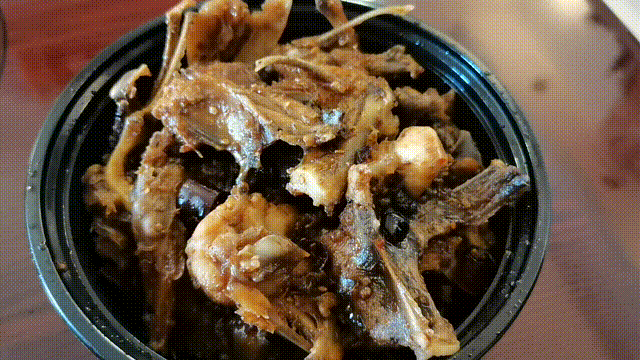 炒雞架的味道更加濃郁,配著一絲甜辣的孜然味,頗受年輕人喜愛,幾乎都能帶著骨頭嚼食。