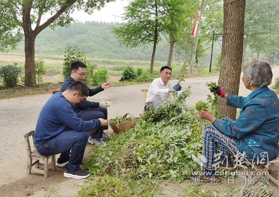 學(xué)員們跟農(nóng)戶一起勞作,幫助老奶奶采摘艾葉。通訊員 供圖