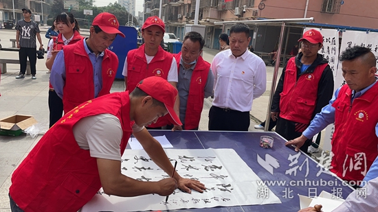 書(shū)法志愿者揮墨潑毫。通訊員供圖