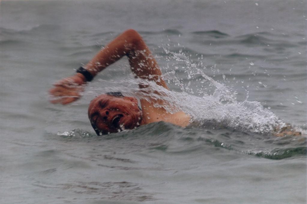 2004年,袁隆平在三亞游泳