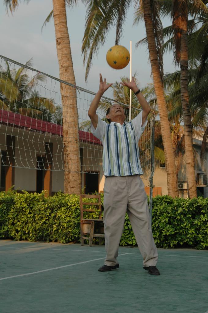 2006年,袁隆平在三亞南繁基地利用科研業(yè)余時間打氣排球