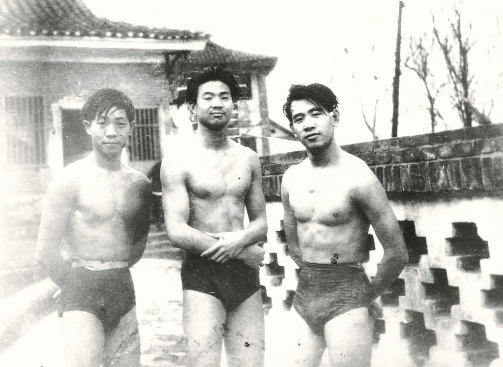 學生時代的袁隆平(左一)酷愛游泳