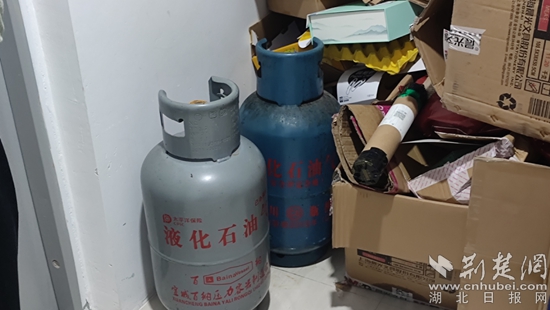 疏散通道堆放可燃物和液化氣罐。通訊員 供圖