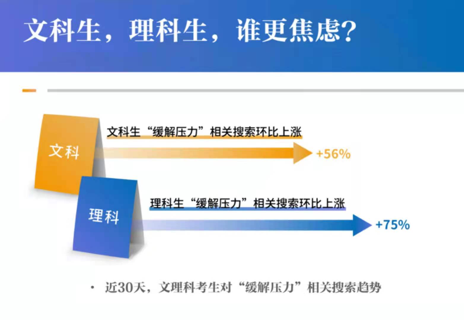 備考之路,壓力常有。最后沖刺階段,如何解壓是考生家長(zhǎng)間的熱門(mén)議題。數(shù)據(jù)顯示,2021年以來(lái),文理科應(yīng)屆用戶(hù)對(duì)“緩解壓力”的相關(guān)搜索都在明顯上漲。其中,理科考生的壓力增長(zhǎng)似乎更為明顯。
